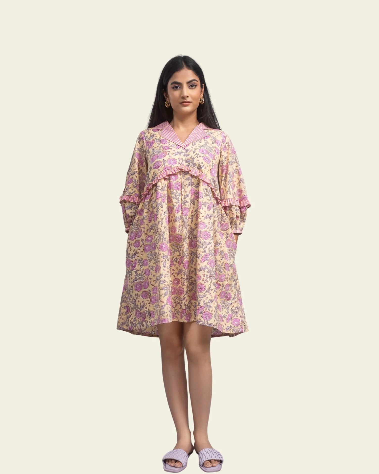 the fit is really flattering and the color and print is good. Sleeves are my favorite!