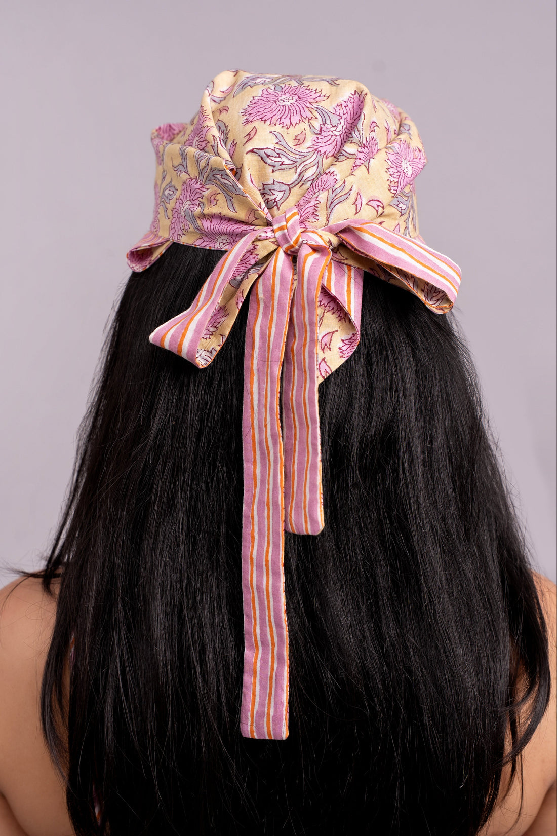 Green Butta Head Wrap and Floral Print Head Scarf for Women