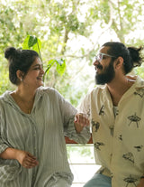 We work primarily with 100% cotton for its breathability and comfort, and choose hand block-printed fabrics for their character. Subtle irregularities are not flaws but the mark of the human hand, ensuring no two pieces are ever exactly alike.
