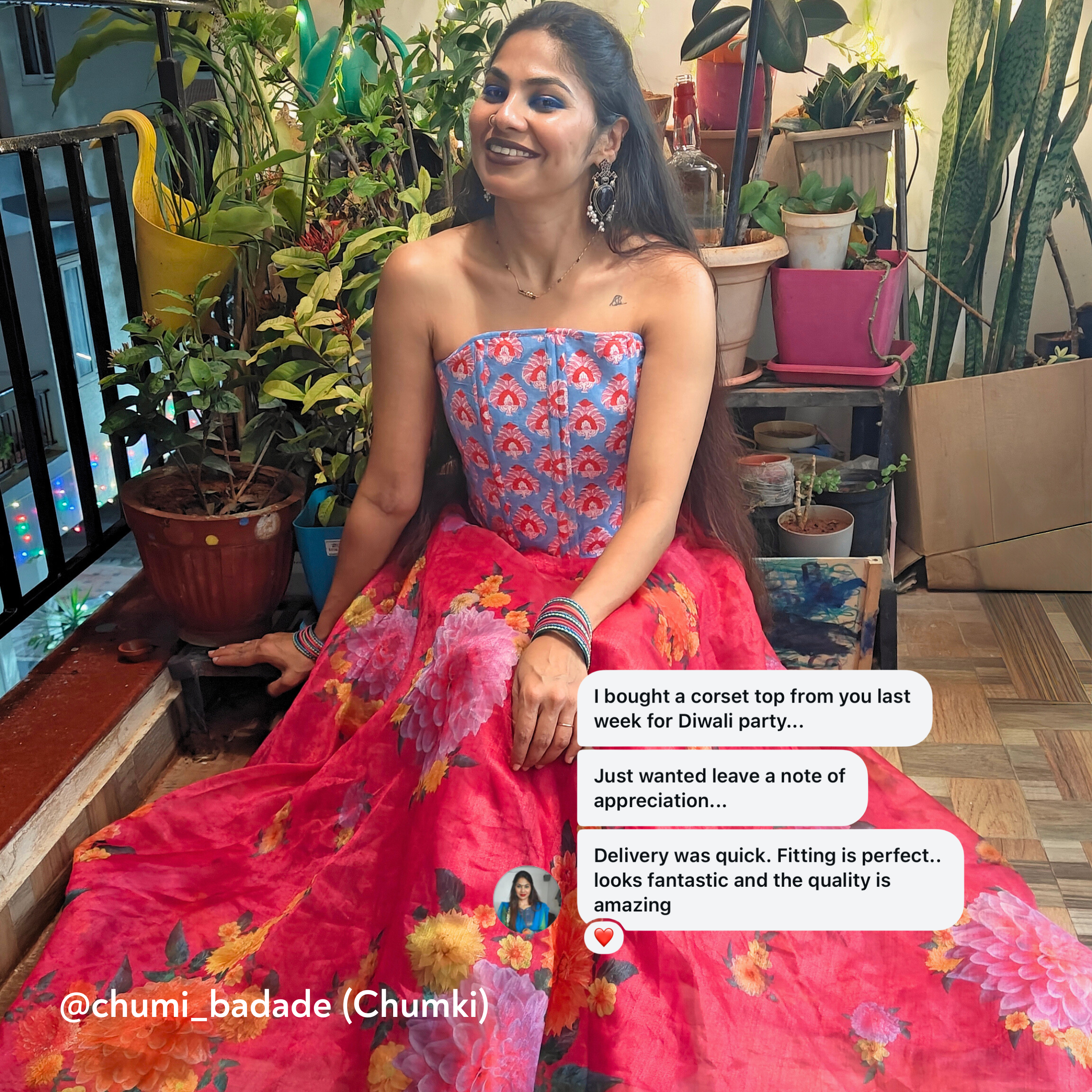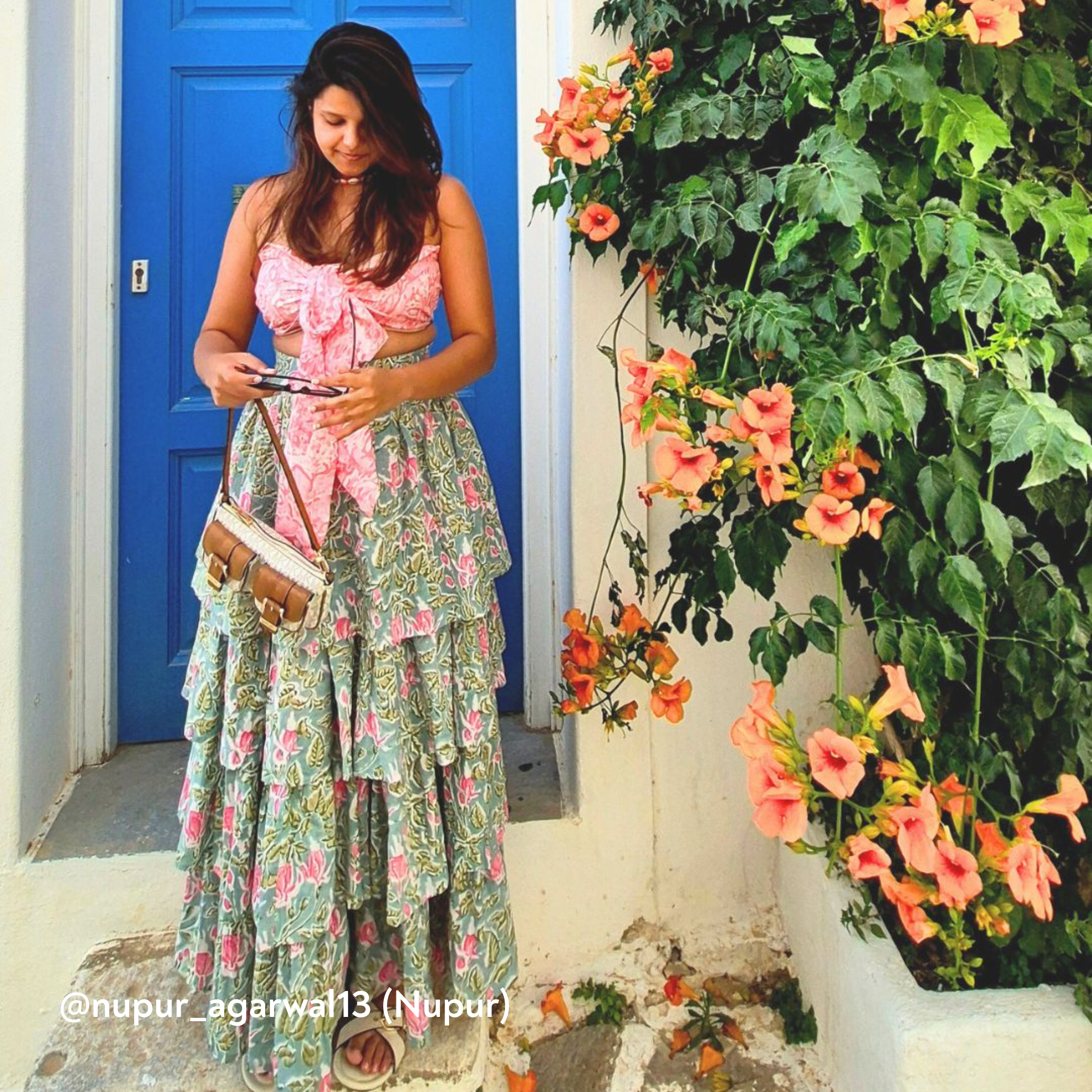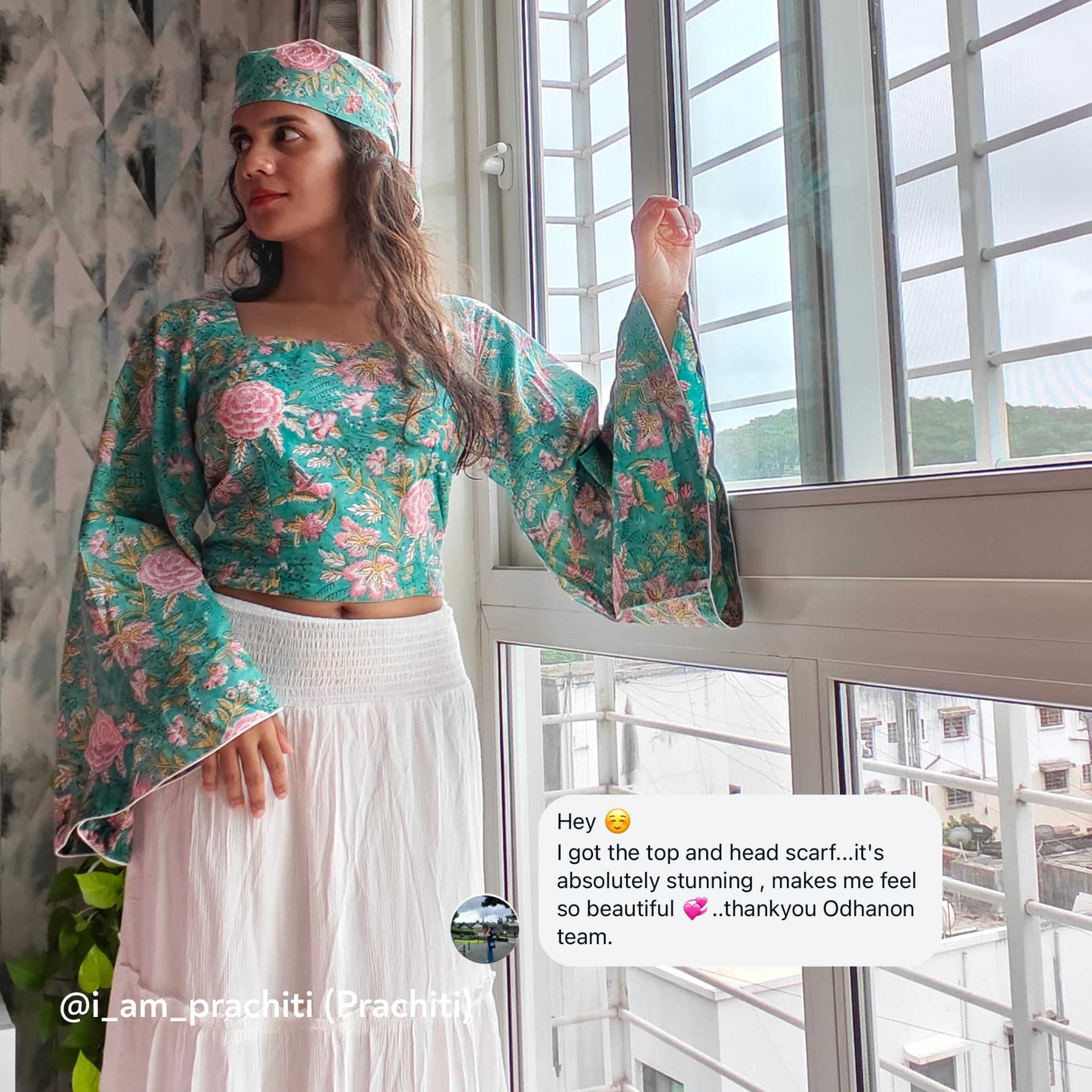 Add a pop of color and a touch of bohemian charm to your hair game with our delightful set of three block printed cotton scrunchies! Made with love and crafted for comfort, each scrunchie wraps around your locks twice, ensuring a secure and stylish hold for any hair type (depending on hair thickness).