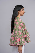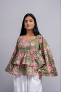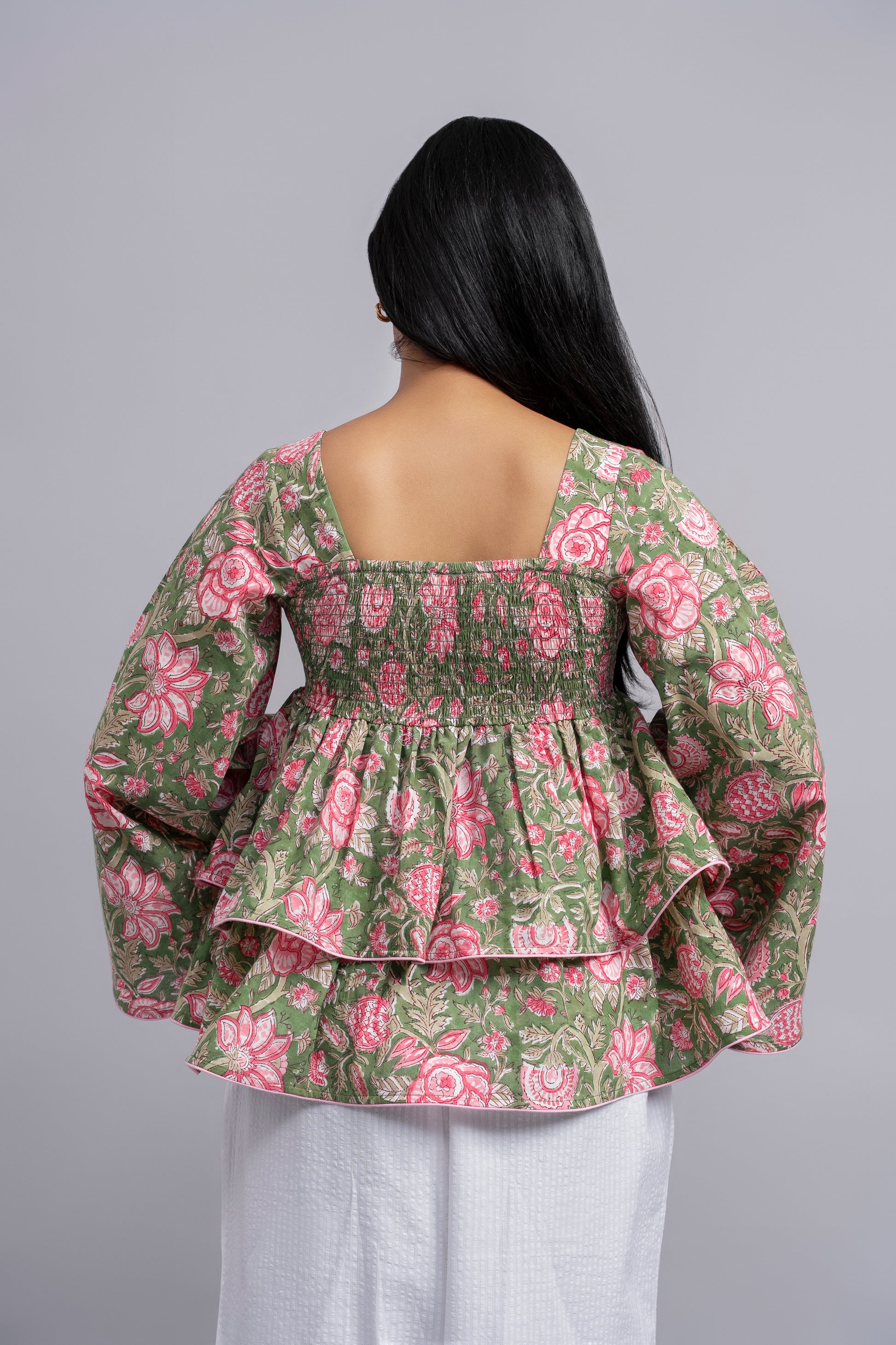 This Peplum top features a two-layered peplum with generous flare, complemented by statement bell sleeves and a stretchable back for a flattering fit. Ideal for brunches, casual outings, or cultural events, this versatile piece effortlessly transitions from day to night.