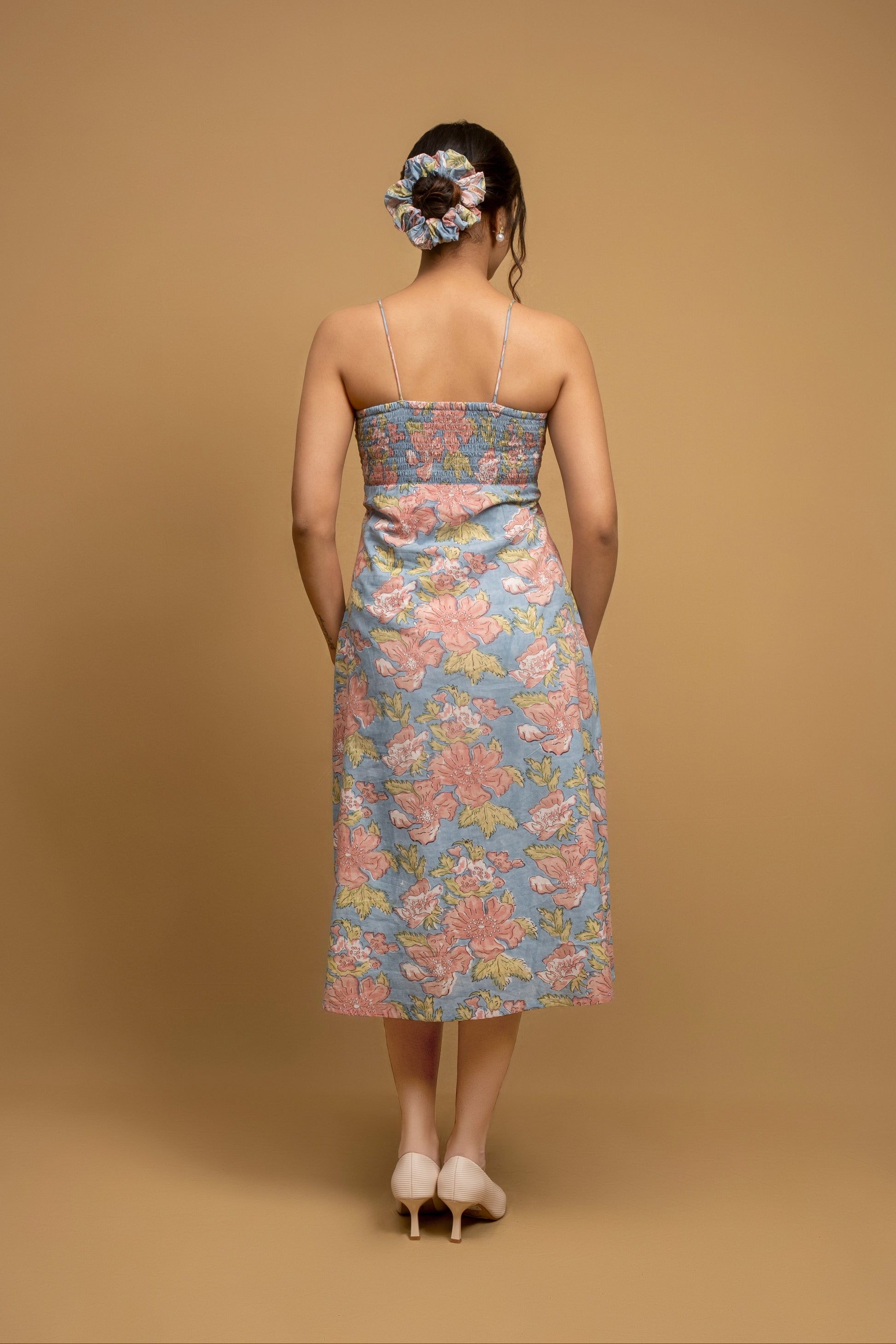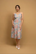 The Hazel dress is your perfect everyday essential, blending effortless grace with a touch of romantic nostalgia. Featuring a flattering V-neckline and delicate spaghetti straps, this silhouette is adorned with a beautiful floral hand block print. It's the ideal piece for a laid-back outing or a casual gathering, embodying the relaxed yet charming spirit of our "Pretty Women Era" collection.