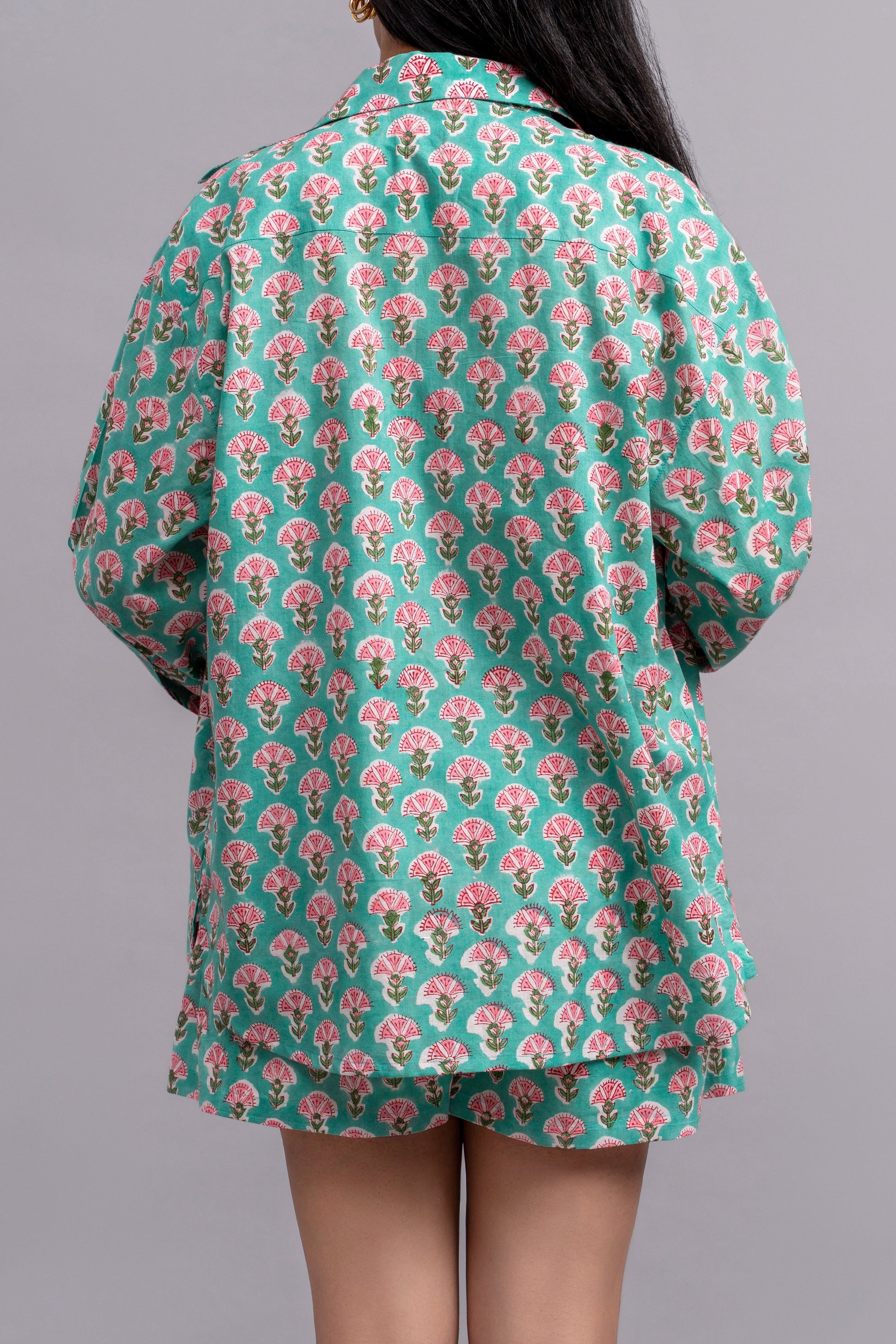 Effortlessly chic and endlessly comfortable, this Oversized Block-Print Shirt is a wardrobe must-have. The boxy fit and comfortable cotton fabric provide an easy drape, while the vibrant teal and pink floral print adds a fresh pop of color. It's the simplest way to inject your Soft Girl charm into any casual look.