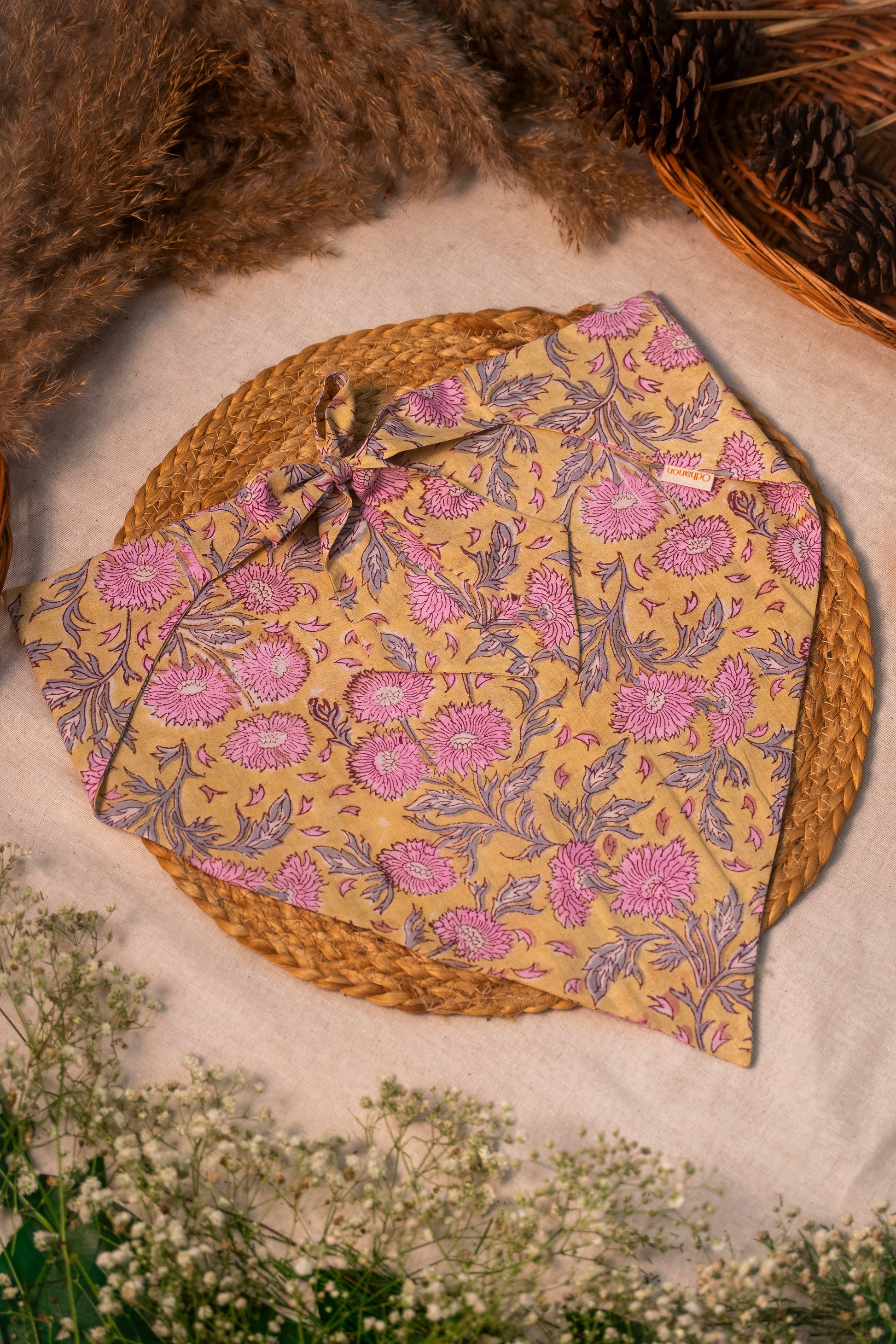 Set of 3 hand crafted cotton bandanas. Perfect for vacations, casual outings, or sunny days. Style as head scarves, neck ties, or chic bag accessories to add a trendy, boho touch.