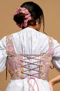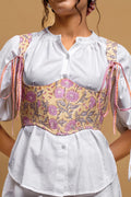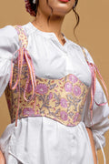 The Violet Bust Corset is a masterpiece of fusion fashion. It combines the structured charm of a traditional corset with the free-spirited beauty of Indian hand block printing. Designed with a lace-up back for a custom fit and an elegant bustline, this piece from our Pretty Women Era collection is perfect for adding an artistic, cinched-waist silhouette to your favorite tops and dresses.